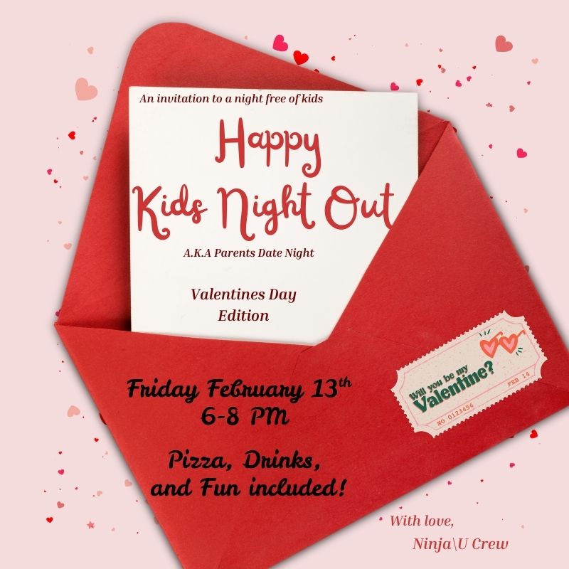 Parents — this one’s for you. Drop the kids off at Ninja\U and enjoy a real Valentine’s date night (yes, uninterrupted conversations and food that’s still hot 😄).