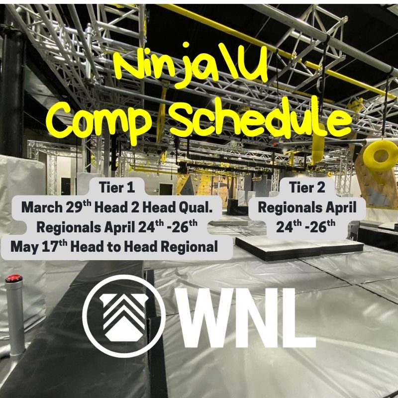 These competitions are sanctioned by WNL and hosted by Ninja U. The courses will be designed by Ninja U course designers and veteran athletes in line with WNL standards to provide the best ninja experience possible.